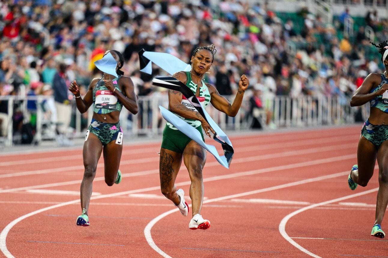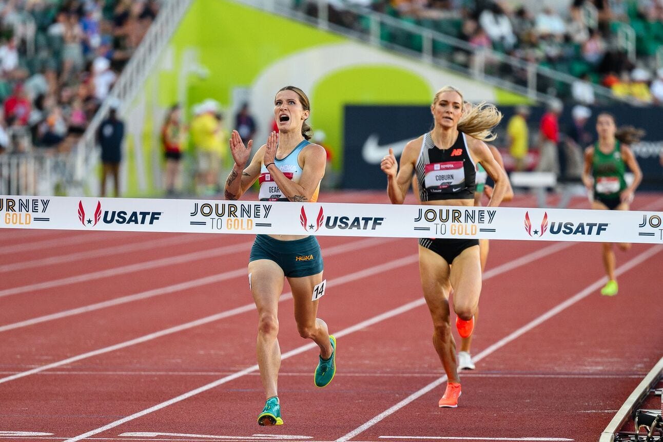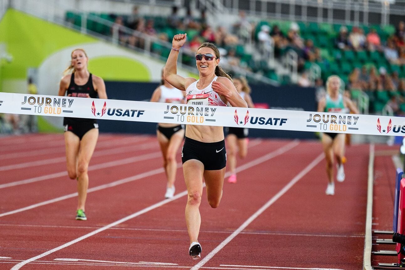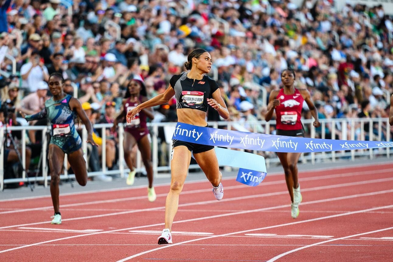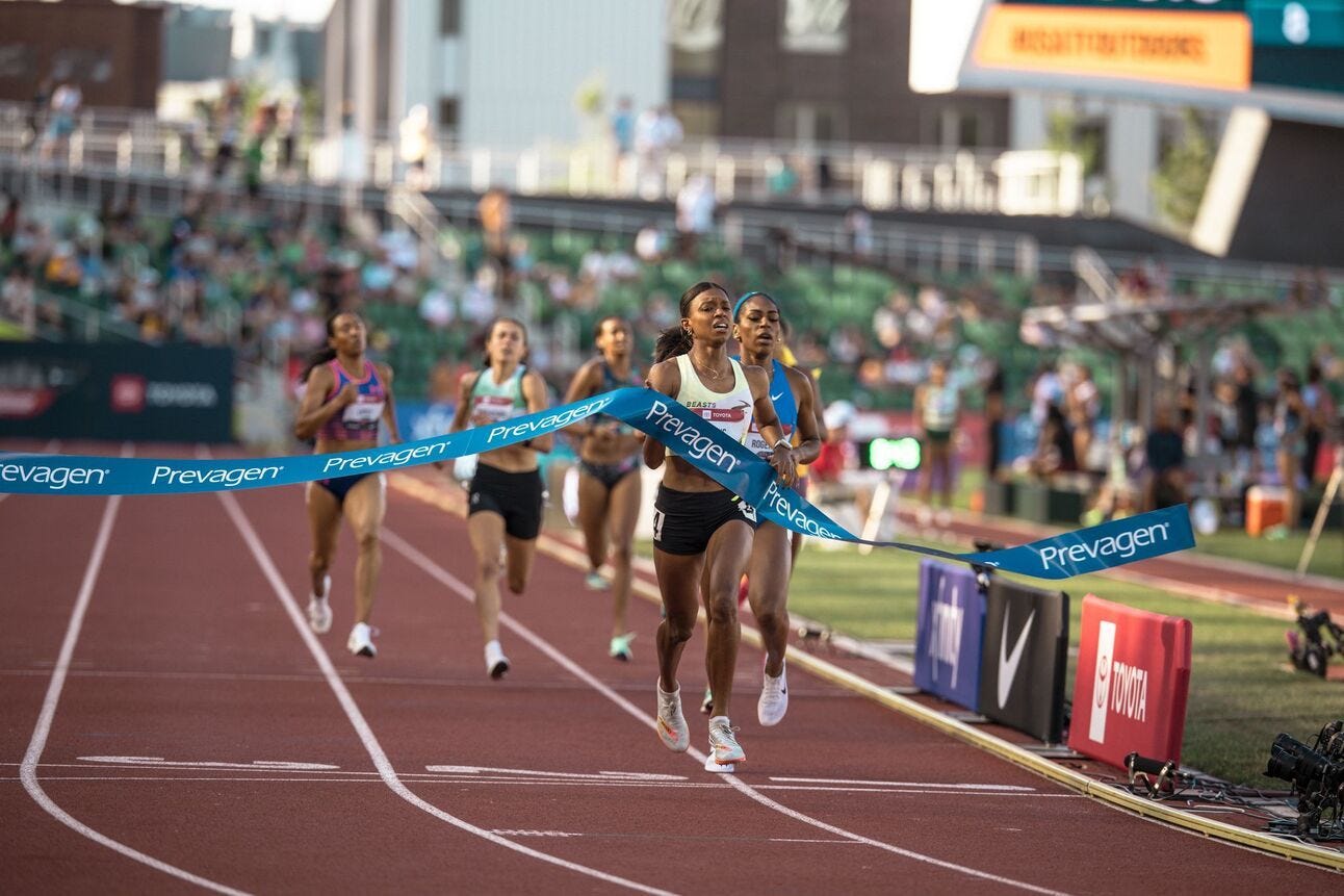 It would not be a trip to Eugene without flight delays, so predictably, I am coming to you late Monday evening from a plane that the airline finally located at the eleventh hour. My voice is gone, but my heart is full as another exciting US Championship has concluded. Every time you get the entire track and field community together in the same six-block radius there is going to be more excitement and drama than can realistically be packed into your standard issue Wednesday newsletter. But alas, I’m going to try to unpack the top moments and takeaways anyway, now that we (mostly) know who is heading to Budapest…