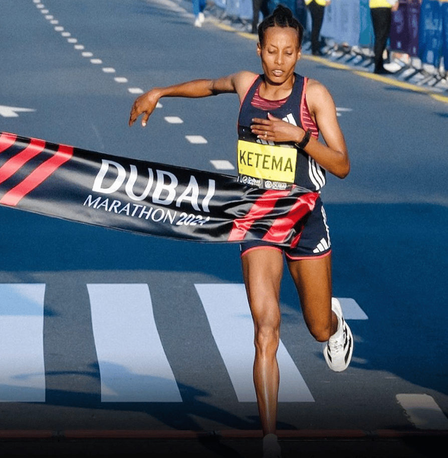 You’re probably thinking of the world record holder, Tigist Assefa. But this time around it’s her training partner, Tigist Ketema, who has announced herself to the world at the Dubai Marathon. Her winning time – 2:16:07 – not only broke Ruth Chepngetich’s course record, it was the fastest debut ever, and is good for number eight on the all-time list.