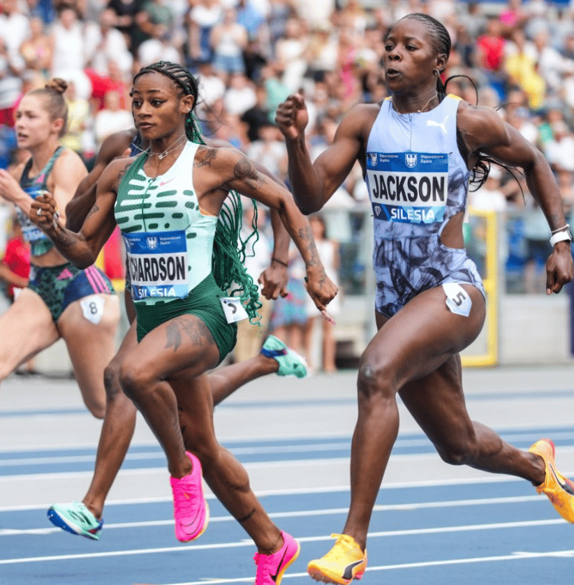 The showdown in Silesia between Sha’Carri Richardson and Shericka Jackson was sure to attract a lot of eyeballs after their respective national championship performances of 10.71 and 10.65. And the matchup delivered: both strong finishers, they provided fans with a great battle. But ultimately the American came out on top in 10.76 (+0.2) to move the 100m scoreboard to an even 3-3 lifetime.