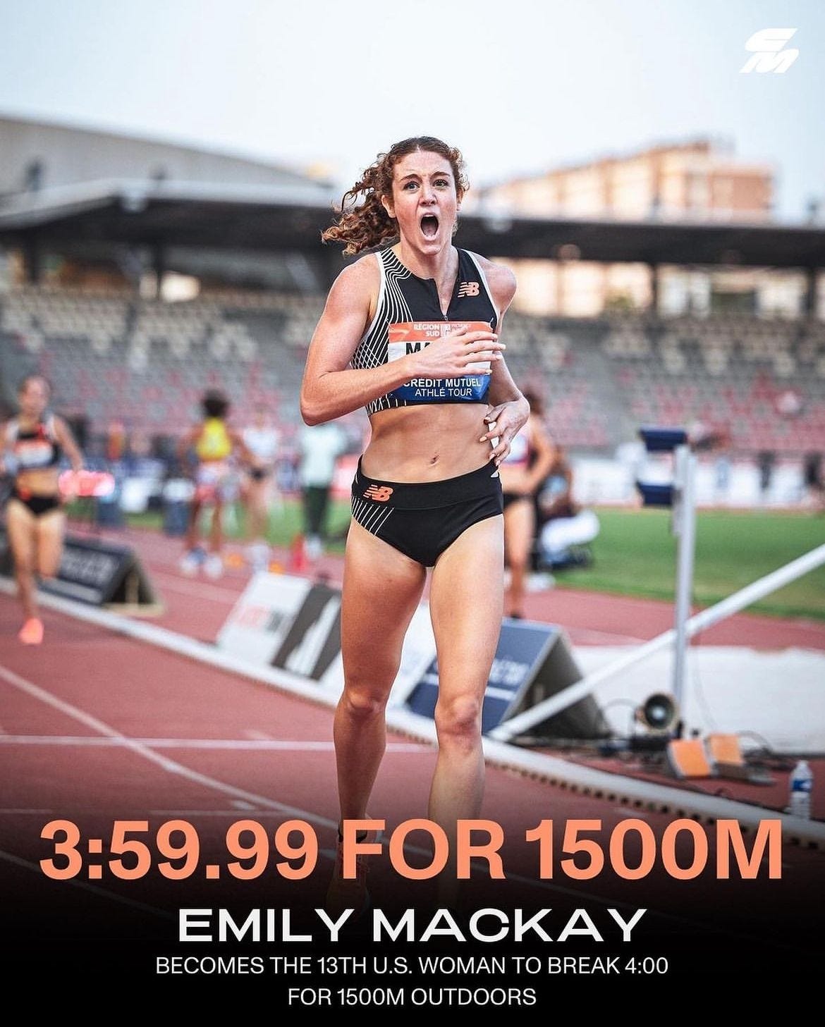 New Balance Boston’s Emily Mackay clearly chose option two! She channeled the disappointment of an eighth-place finish at USAs to win the 1500m at the Morton Games the following Friday. Then three days after that, in Marseille, Mackay became just the 14th US woman to break the four-minute barrier and the first this year, as she leaned across the line in 3:59.99.