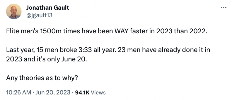 We’re living in a golden age of track, it seems, and before I get into the technological factors contributing to that, I gotta at least acknowledge the fact that the driving force is the athletes! They’re just good right now.