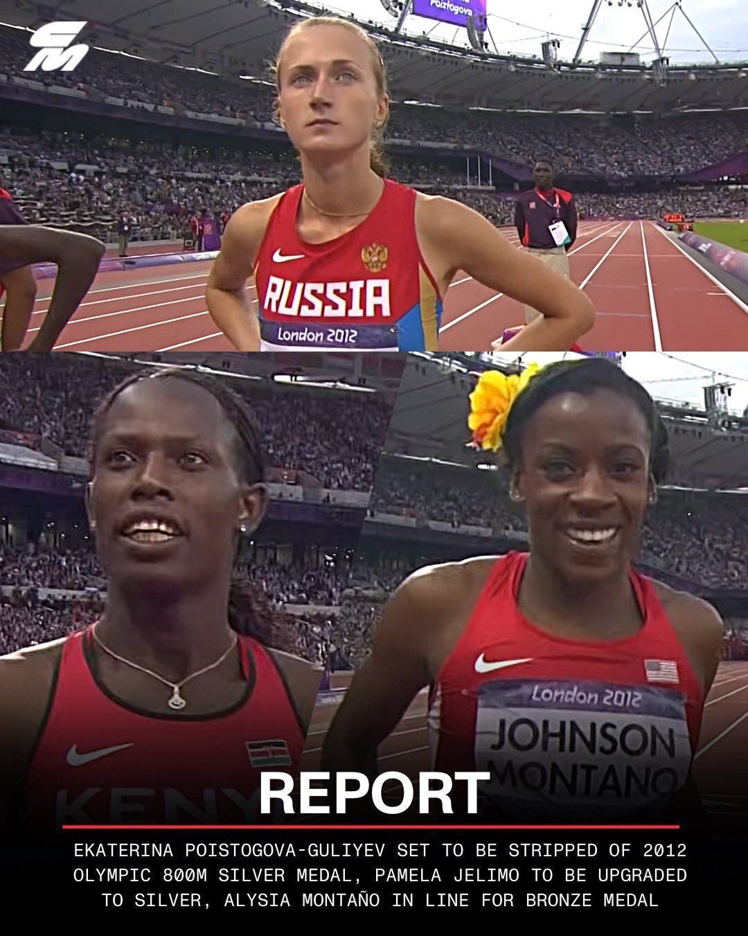 It’s like they say: winners occasionally cheat, cheaters sometimes prosper for about 12 years. The then-winner of the 2012 women’s Olympic 800, Mariya Savinova, was stripped of her gold medal back in 2017 due to doping offenses. That moved second-place finisher Caster Semenya up into gold position, Saninova’s Russian compatriot Ekaterina Poistogova-Guliyev into silver, and gave Pamela Jelimo a retroactive bronze medal.