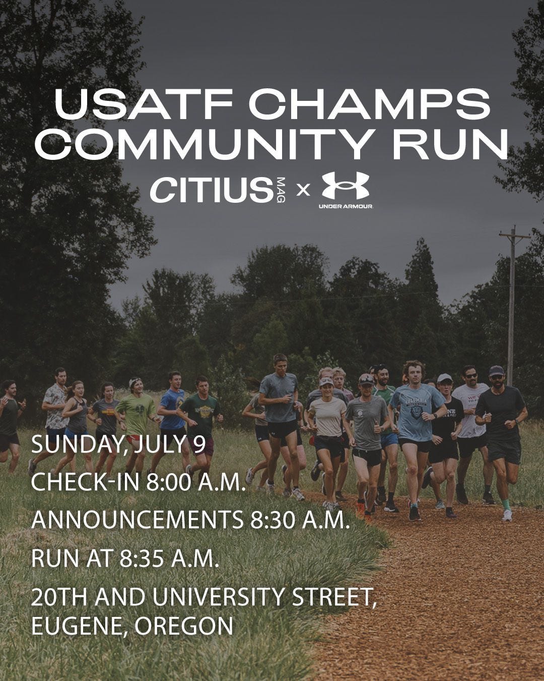 Heading to Eugene for the US Outdoor Championships? Join CITIUS MAG and Under Armour on the morning of Sunday, July 9th for a community run. We’ll depart from UA Athlete House (E 20th Ave. and University St.) at 8:35AM and finish up with coffee and doughnuts. The First 100 runners to RSVP & check-in will receive a custom CITIUS x UA singlet!