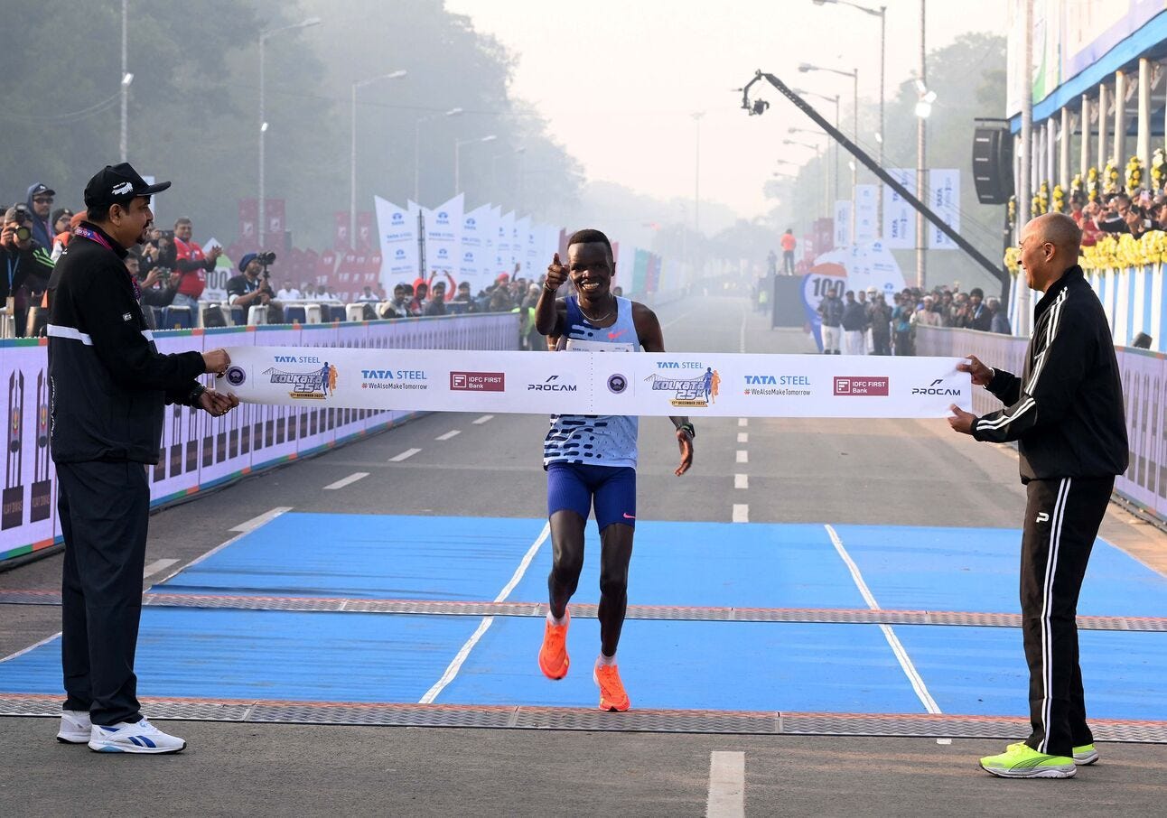 If you still need some additional context to just how good Eliud Kipchoge is, then consider that at the Kolkata 25K Daniel Ebenyo’s winning time of 1:11:13 will only be considered the “stand-alone world best.” That’s because Kipchoge ran five seconds faster through the same split, despite 17 more kilometers to go when he ran 2:01:09 in Berlin.